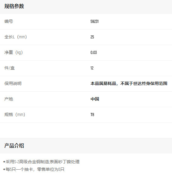 產(chǎn)品名字:世達(dá)5件套6.3MM系列25mm長(zhǎng)花型旋具頭T8