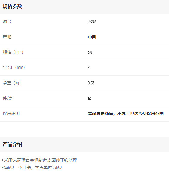 產(chǎn)品名字:世達(dá)6.3mm系列25mm長六角旋具頭3mm