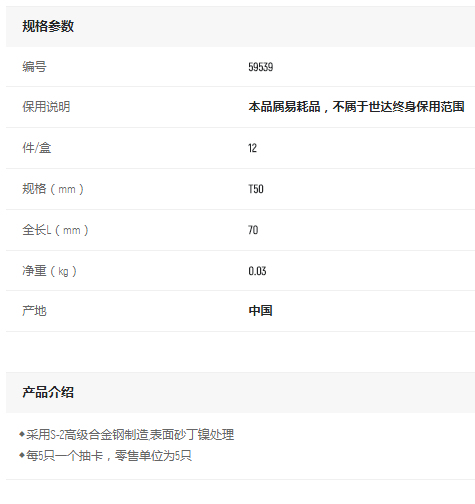產(chǎn)品名字:世達(dá)5件套8MM系列70mm長花型旋具頭T50