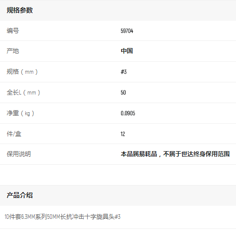 產(chǎn)品名字:世達10件套6.3MM系列50mm長十字旋具頭#3