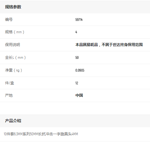 產(chǎn)品名字:世達10件套6.3MM系列50mm長一字旋具頭4MM