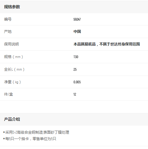 產(chǎn)品名字:世達(dá)6.3mm系列25mm長中孔花型旋具頭T30