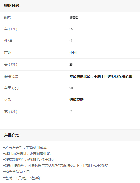 產(chǎn)品名字:世達(dá)諾梅克斯耐高溫手套