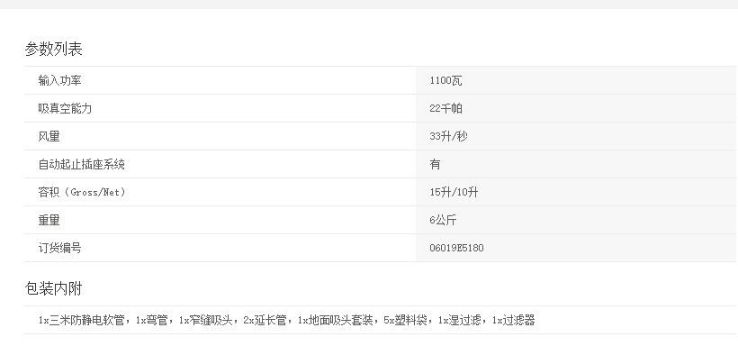 產(chǎn)品名字:博世吸塵機GAS15PS