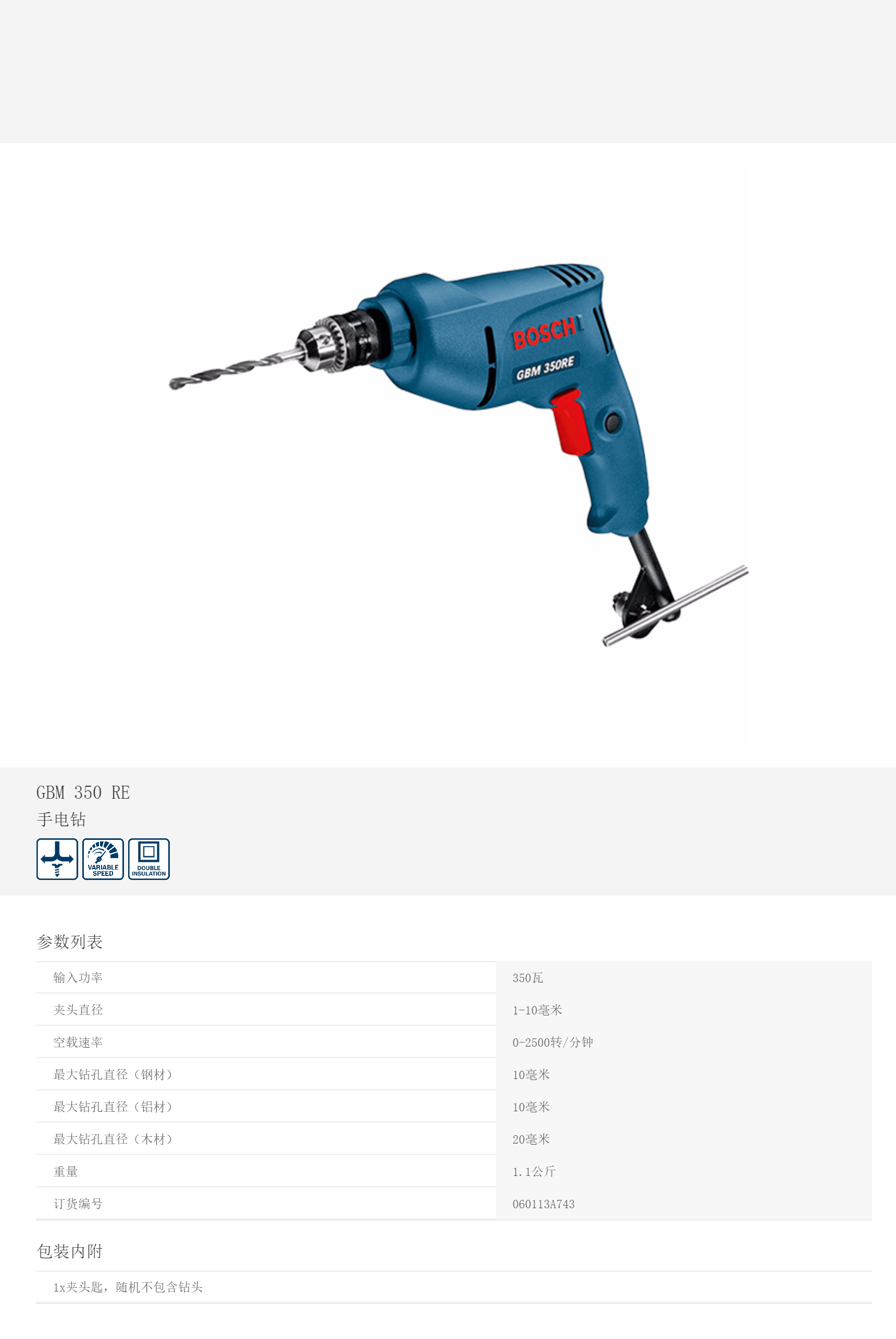 首頁>產品中心>電動工具>電鉆/沖擊鉆>博世手電鉆GBM350RE