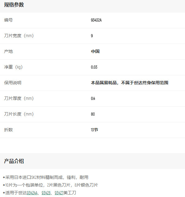 產(chǎn)品名字:世達10件美工刀片13節(jié)9*80mm