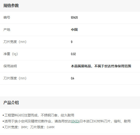 產(chǎn)品名字:世達(dá)塑柄推鈕美工刀13節(jié)9*80mm