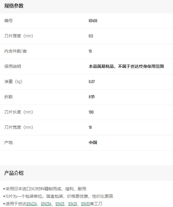 產(chǎn)品名字:世達(dá)10件套美工刀片8節(jié)