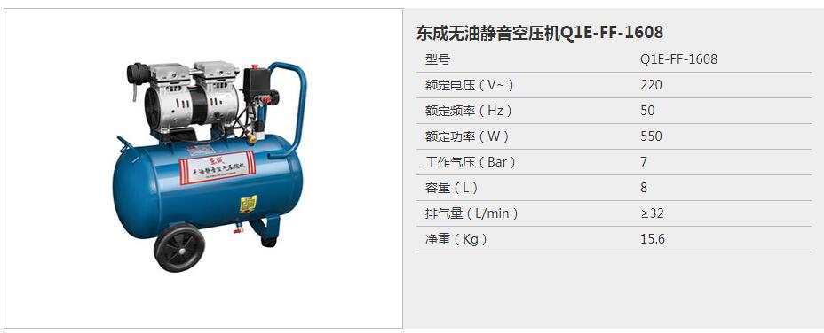 產(chǎn)品名字:東成無油靜音空氣壓縮機(jī)Q1E-FF-1608