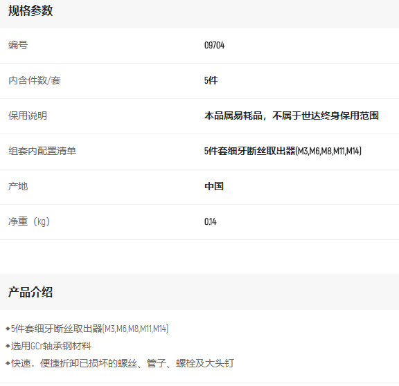首頁>產(chǎn)品中心>其他手動工具>斷絲取出器>世達5件套細牙斷絲取出器