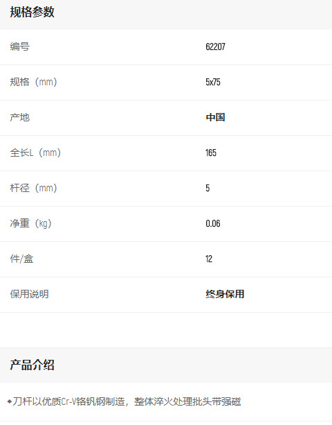 產(chǎn)品名字:世達(dá)A系列一字批5x75mm