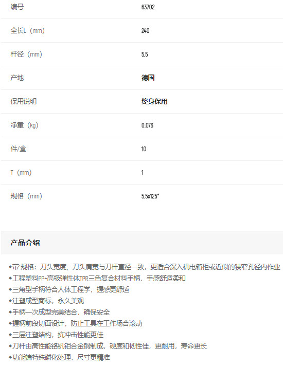 首頁>產(chǎn)品中心>螺絲批>一字螺絲批>世達G系列一字批5.5*125mm