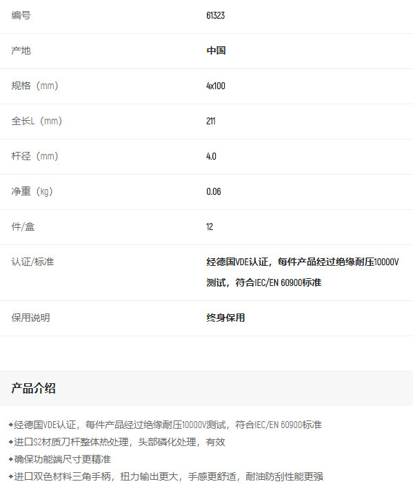 產(chǎn)品名字:世達(dá)61323T列雙色一字絕緣螺絲批